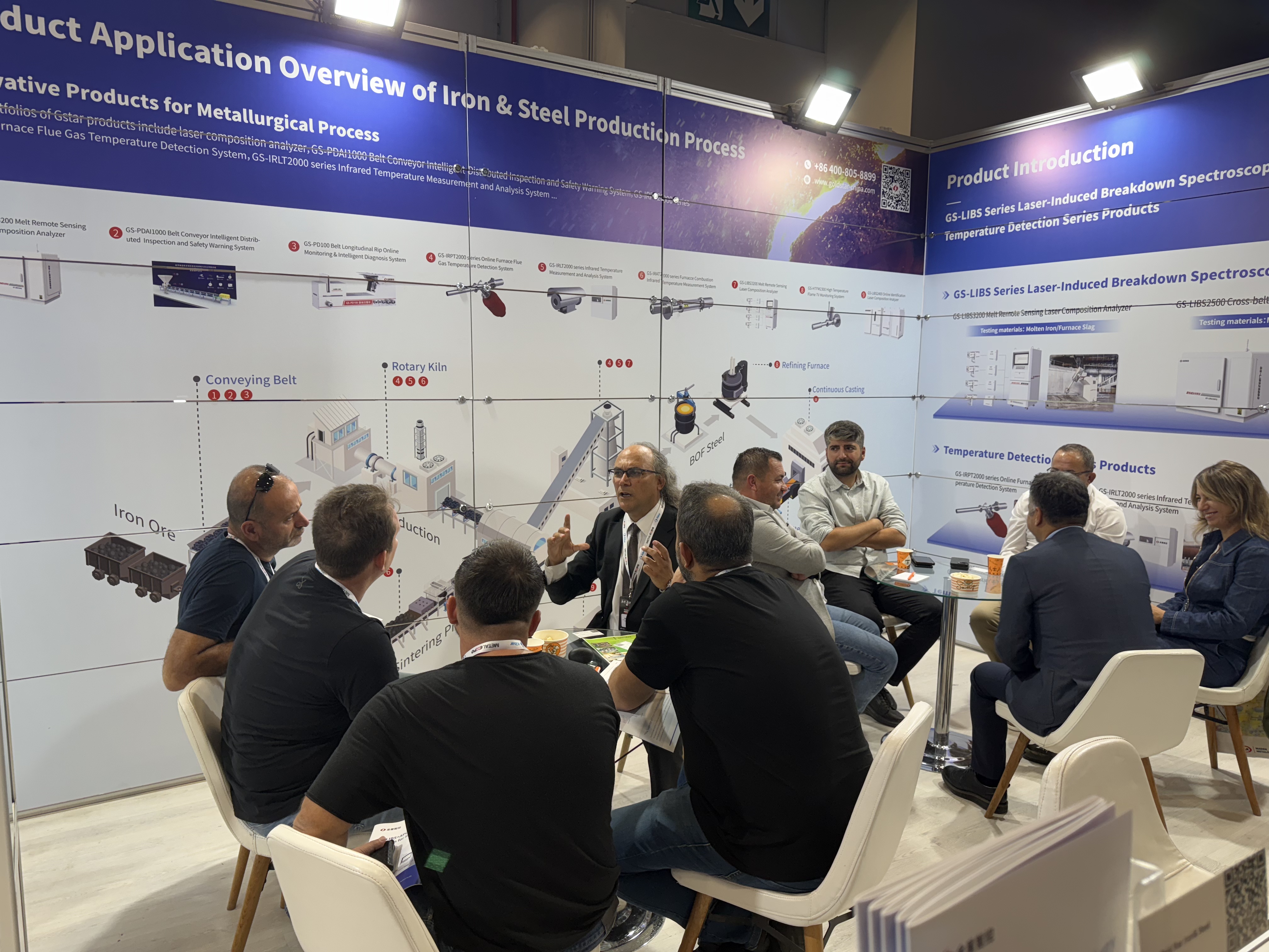 金星智控?cái)y成分檢測(cè)、視覺感知、溫度探測(cè)等智能感知裝備亮相,向國際展現(xiàn)了中國企業(yè)在鋼鐵智能化領(lǐng)域的技術(shù)實(shí)力與創(chuàng)新成果,吸引了來自土耳其、俄羅斯、伊朗、羅馬尼亞等多個(gè)國家知名企業(yè)代表駐足交流與熱烈洽談。
